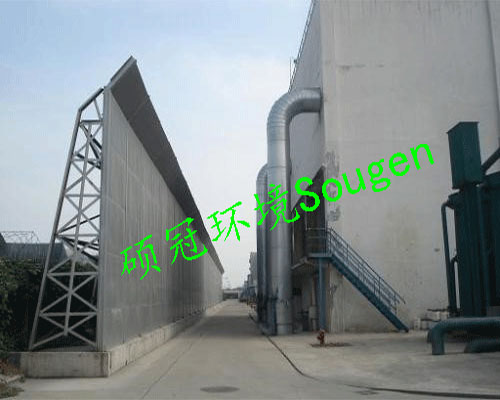 隔聲屏障為全金屬框架結(jié)構(gòu),內(nèi)置厚隔聲材料。消聲板片用50-200mm厚防潮離心玻璃棉作為吸聲層,用憎水玻纖布包覆,有效的降低噪聲,同時(shí)也不影響設(shè)備設(shè)施的正常運(yùn)行。消聲片飾面層為1.0-1.2mm厚百葉穿孔板,百葉穿孔率大于30%,輕鋼龍骨結(jié)構(gòu)。消聲插片為活絡(luò)結(jié)構(gòu),可以從消聲片中抽出,以便檢修。消聲板型鋼安裝支架與原有冷卻塔脫開,自成體系,避免產(chǎn)生共振現(xiàn)象。因冷卻塔出風(fēng)口處工況較復(fù)雜,特別是水霧嚴(yán)重,消聲片飾面層如采用鍍鋅板及油漆防腐處理,長(zhǎng)期在潮濕環(huán)境下工作,容易銹蝕。為避免出現(xiàn)此類問(wèn)題,延長(zhǎng)消聲器使用年限,故表面噴涂防腐。