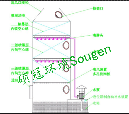 廢氣中的部分粉塵會堵塞在填料的縫隙中,增加了阻力,需定期清洗填料。